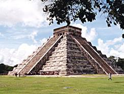 Чичен-Ица — священная столица майя. Среди ее развалин Храм Ягуара, названный из-за трона в виде ягуара, найденного в святилище, Храм Воинов, Большой Стадион, Храм Орлов, Храм Стенных Панелей, Храм Кукулькана, Священный Колодец. Раскопки города завершились в 1936 г. В одном из храмов найдена надпись с датой, соответствующая примерно 879 г. н. э. Город Чичен-Ица пережил свой расцвет примерно в то же время, что и Копан, Тикаль, Паленке, Яшчи-лан, Ушмаль. Руины древнего города представляли собой некоторый парадокс — больше половины здания города коренным образом отличается от здания майя. На колоннах и стенах одного из храмов были высечены десятки необычных мотивов — фигуры воинов в доспехах из стеганой хлопчатобумажной ткани, с копьями и щитами. Одежда и характер не соответствуют традиционным изображениям воинов майя. Найден ряд новых типов построек. Одна из них — совершенно круглое здание, известное под названием Караколь (улитка). Исследователи предполагают, что тут могла находиться обсерватория. Другие постройки города имели длинные ряды колонн. А большой открытый участок, окруженный колоннами, служил, видимо, рынком. Столь же необычны колонны по бокам дверных проемов и лестниц, украшенные скульптурами змеев, а также длинные ряды настенных рельефов с изображениями грифов, держащих в когтях человеческое сердце, ягуаров, приготовившихся к прыжку.