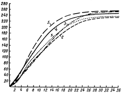 – максимальное значение признака, к которому стремится весь ряд, т.е. средняя живая масса одного пола данной породы; - сумма прироста в постэмбриональный период;