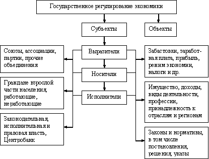 Рис. 33. Субъекты и объекты государственного регулирования рыночной экономики