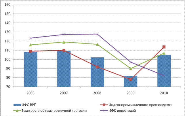 ИФО ВРП в 2010 году к уровню 2009 года составил 105%, индекс промышленного производства - 113,6%. Улучшилось финансовое состояние предприятий: 74,5% крупных и средних предприятий закончили 2010 год с прибылью, причем сальдированный финансовый результат увеличился в 2 раза по сравнению с 2009 годом.