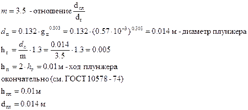 Полный ход плунжера следует принимать с некоторым запасом для компенсаций износа плунжерной пары в эксплуатации, обеспечения наполнения надплунжерного объема и необходимость получения отсечки топлива при достаточных скоростях плунжера, т.е.,