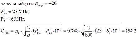 Определим среднюю скорость впрыска топлива за первый период подачи топлива, м/с
