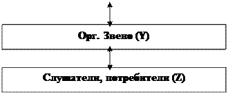 Между этими координатами находится некое коммуникативное пространство («КСП-среда»), в котором «X-КСП» выступает в качестве адресанта, «Z-КСП» в качестве адресата, а «Y-КСП» в качестве посредника (адресанта-адресата) между ними.