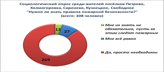 5. Проведение анкетирования «Необходимы ли знания правил пожарной безопасности современному человеку?» среди жителей близлежащих посёлков: Петрово, Холмогоровка, Свободное, Кузнецкое, Сиренево (Гурьевский и Зеленоградский районы) и Калининграда.