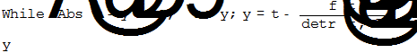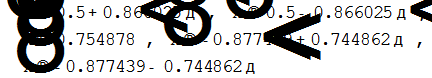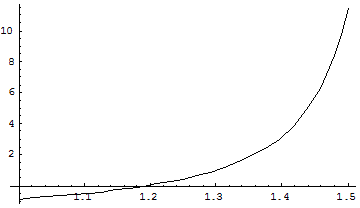 Видно что среди всех корней уравнения, найденных с помощью стандартных функций пакета Mathematic присутствует корень, равный найденному методом касательных.