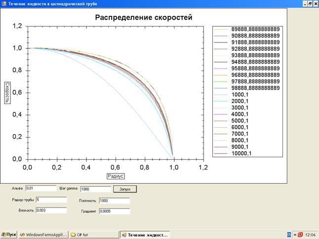 Следовательно интегральное уравнение способно описывать распределение скоростей от центра трубы до её стенки в обоих режимах течения жидкости.