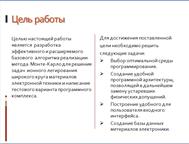 Целью настоящей работы является разработка эффективного базового алгоритма реализации метода Монте-Карло для решения задач ионного легирования широкого круга материалов электронной техники и написание тестового варианта программного комплекса. Для достижения поставленной цели необходимо решить ряд ниже перечисленных задач.