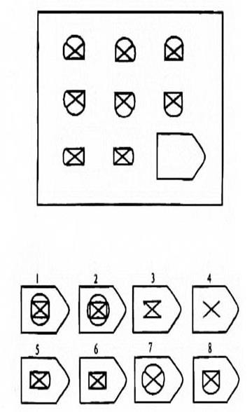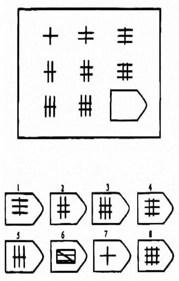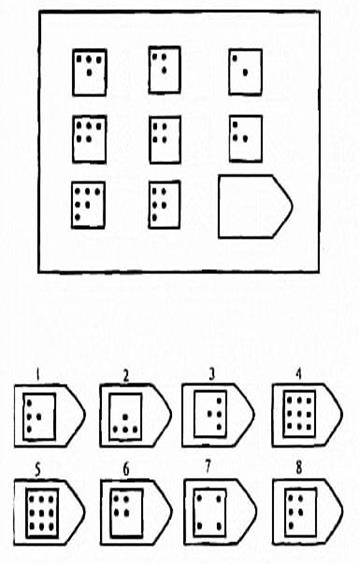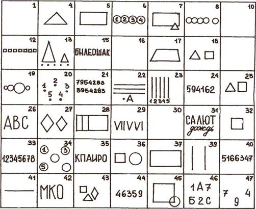 В первом случае для предъявления стимульного материала необходимы электронный тахистоскоп, экран и набор диапозитивов. Для обеспечения четкости восприятия материала необходимо соблюдать следующие правила: высота букв (цифр) должна быть 9-10 мм, толщина штрихов – 1,5 мм, длина ряда знаков – 60 мм, расстояние от экрана до испытуемого 0,75-1,5 м, скорость экспозиции 0,07+