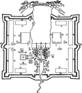 Рис. 2. План Екатеринбурга (завода), 1729 г. (источник: http://ustory.narod.ru/e/e18.html)