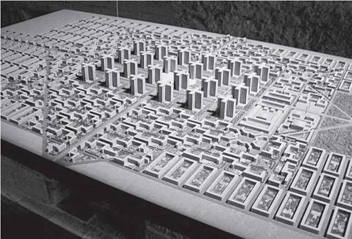 Рис. 4. План Вуазен по реконструкции Парижа, предполагавший глобальный снос или трансформацию квартальной застройки города, арх. Ле Корбюзье, 1925 г. (источник: http://brkthrough.wordpress.com/)