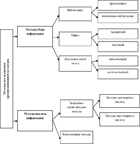 В рамках данной последовательности исследования организационной культуры представляется логичным использование следующей совокупности методов (рис. 1):
