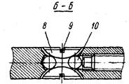 1 — клин; 2 — колпачок; 3 — опорный штырь; 4 — втулка; 5 — нажимной винт; б — рукоятка; 7 — штифт; В — кулачок; 9 — замковое кольцо; 10 — шарик; 11, 12, 13 — винты и шайбы