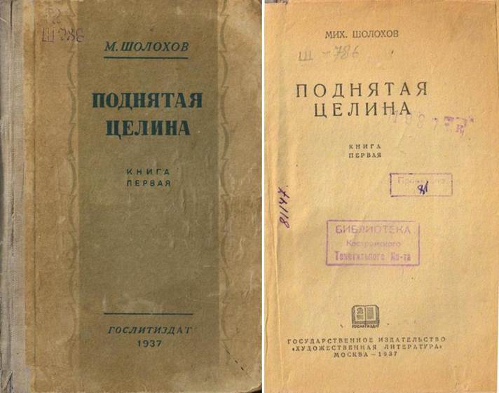 На выставке представлена книга первая романа М.А. Шолохова «Поднятая целина» - издание 1937 года.