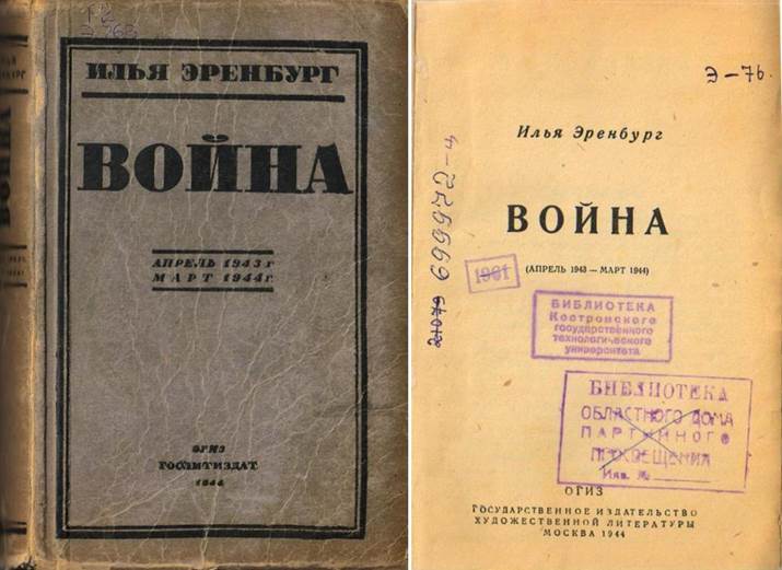 Война (апрель 1943 - март 1944) / Эренбург Илья Григорьевич. - Москва: ОГИЗ Гослитиздат, 1944. - 415 с.