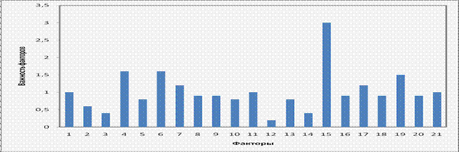 Решим задачу параметризации для других промышленных предприятий с целью ранжирования с упрощенным условием. Предположим, что весовые коэффициенты взяты из опроса предыдущих экспертом.