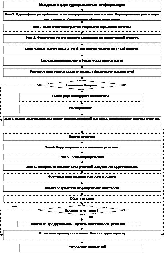 Из приведенной формулы оценки адаптивной модели управления видно, что учтены все элементы слагаемых общей эффективности. Наименьшая слагаемая – 0,38, поэтому менеджеру необходимо провести управленческий анализ элементов процедуры управления и при организации системы контроля за исполнением решений, внести существенные изменения в систему управления.