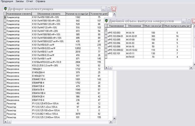 Спроектированная и реализованная авторами база данных наличия покупных ЭРЭ на складе предприятия; программа расчета, автоматизирующая процессы подготовки ежедневных оперативных справок по обеспечению выполнения текущих заказов и покрытия дефицита необходимых ЭРЭ, также разработанная и реализованная авторами.