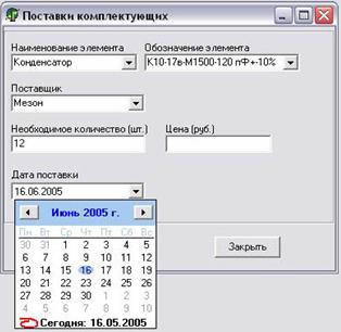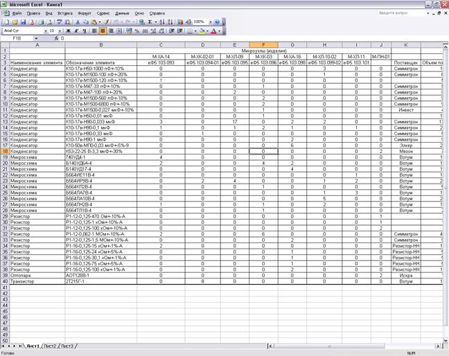- обработка данных по срокам закрытия дефицита (поставки недостающих ЭРЭ) и определение финансовых затрат на приобретение этих комплектующих ЭРЭ;