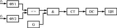 Сигналы с формирующих устройств подаются на цифровой компаратор, на выходе которого будут присутствовать импульсы положительной полярности. Длительность этих импульсов пропорциональна сдвигу фаз сигналов f
