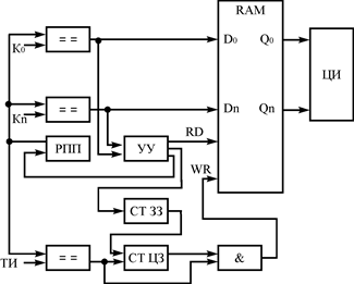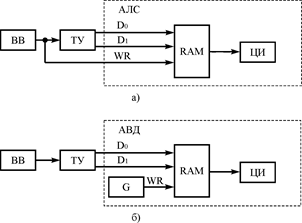 предназначена для хранения информации. Запись в память осуществляется при помощи внешнего (АЛС) или внутреннего (АВД) тактового импульса;