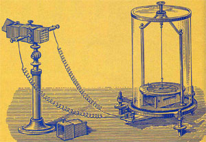 Рис. 4. Приемник теплового излучения М. Меллони (1840 г.) с гальванометром (справа)