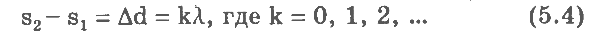 Если разность S2-S1 равна целому числу k длин волн А, то в точке М гребень одной волны будет накладываться на гребень другой, т. е. волны будут максимально усиливать друг друга: