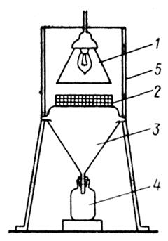 Рис. 1. Аппарат Тулгрена: 1 – электролампочка; 2 – почвенная проба на сите;