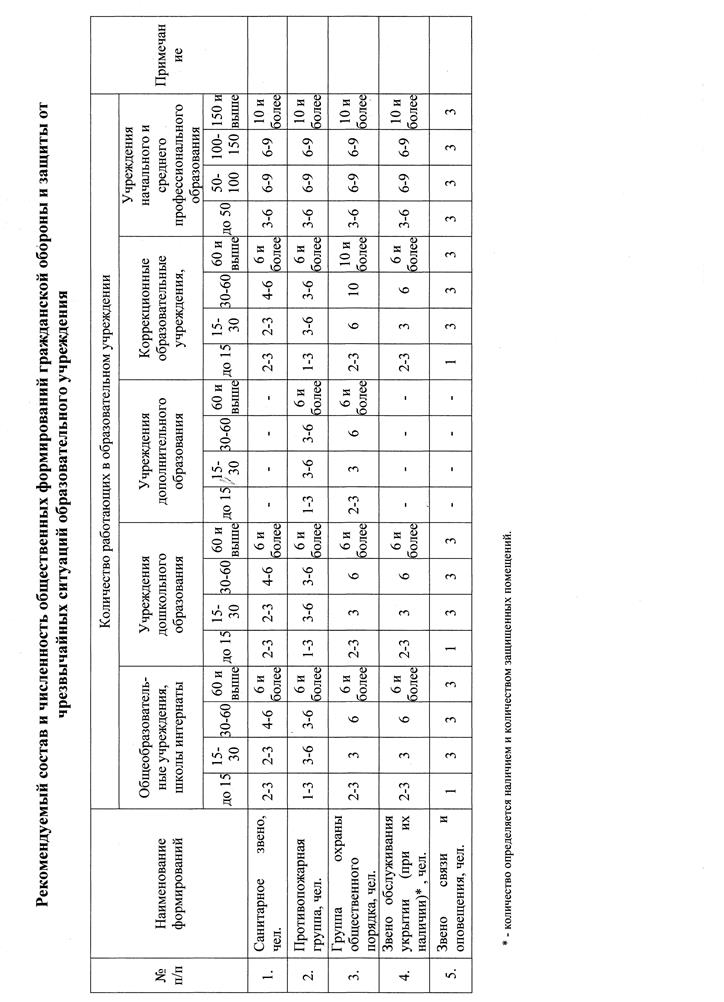 Рекомендуемый состав и численность общественных формирований гражданской обороны и защиты от чрезвычайных ситуаций образовательного учреждения
