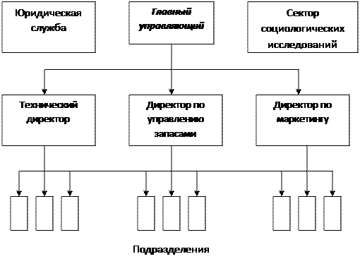 Структура управления обеспечивает выполнение общих и конкретных функций управления, сохраняет целесообразные вертикальные и горизонтальные связи и разделение элементов управления.