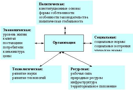 Организация должна отражать внешнюю среду. В основе ее построения лежат предпосылки экономического, научно-технического, политического, социального или этического характера. Организация должна создаваться так, чтобы она нормально функционировала, получала вклад в общую работу со стороны всех ее членов и эффективно помогала работникам достигать поставленных целей и в настоящее время, и в будущем. В этом смысле действенная организация не может быть статичной. Она должна быстро узнавать о всех изменениях среды, осознавать их значение, выбирать наилучшую ответную реакцию, способствующую достижению ее целей, эффективно реагировать на воздействия среды.