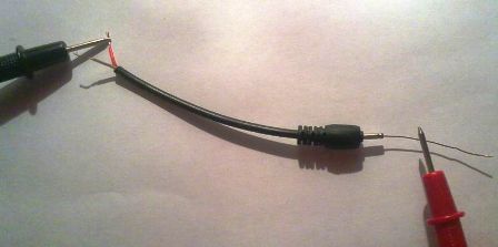 Берем мультиметр и выбираем режим прозвонки. Одним щупом прикасаемся к одному из зачищенных проводников, а другим сначала к внешней контактной части штекера, а затем к вставленной проволочке. Если прибор показал контакт (наличие звукового сигнала), то это свидетельствует о том, что контакт между данным проводом и штекером не нарушен.