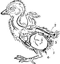 Рис. 2. Размещение запаса желтка у суточного цыпленка: