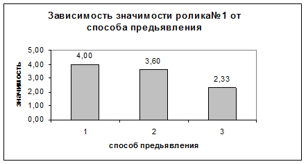 По результатам кластерного анализа было выявлено, что наиболее близкий к идеальному, - способ предъявления рекламного сообщения, при котором используются все три компонента рекламного сообщения. Такой способ предъявления ролика №1 составил один кластер с идеальным представлением потребителей о рекламе пива. Следующий по отдаленности от идеального, способ предъявления рекламного ролика, при котором используется только визуальный ряд. В отдельный кластер выделился способ предъявления рекламного ролика, при котором используется только аудиальный ряд.