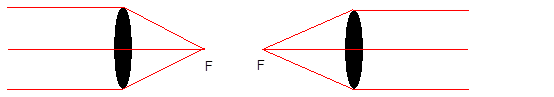 а – параллельный пучок света, проходя через линзу, собирается в фокусе F;