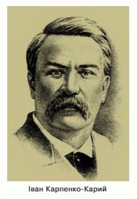 Майже півтора сторіччя минуло від дня народження видатного українського драматурга і театрального діяча Івана Тобілевича, широко відомого також під псевдонімом Карпенко-Карого.Його славне ім’я тісно пов’язане не тільки з українським театральним ренесансом останньої чверті XIX століття, а й з розвитком визвольного руху на Україні, з боротьбою за ідейність та народність літератури. До мистецьких вершин Карпенко-Карий ішов повільною, але твердою, впевненою ходою, долаючи численні перешкоди, що одна за одною поставали на його многотрудному життєвому шляху.