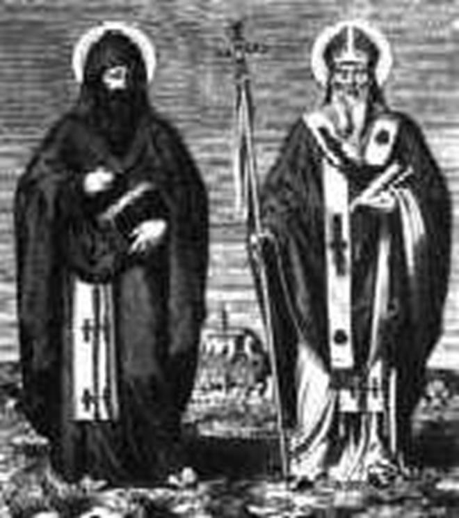 "СТЫ ПЕТРI". Справа - образ св. Павла с надписью: