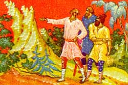 -Отец поручает трем сыновьям оберегать свое добро, а выполняет это младший сын (в народной сказке это вариация конфликта главного героя с социальными силами - предательство старших братьев или тема несправедливого раздела имущества).