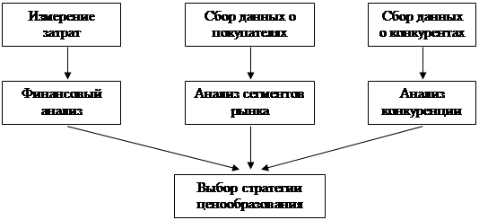 ключевые элементы. Часто бывает, что маркетологи, игнорируя издержки, принимают решения по ценообразованию, максимизирующие долю на рынке, а не рентабельность. Решения финансовых менеджеров, которые не знакомы с предпочтениями потребителей и мотивацией покупок, могут привести к отсутствию спроса на данный товар. Таким образом, при выборе оптимальной стратегии ценообразования все службы предприятия должны действовать согласованно на достижение единой цели.