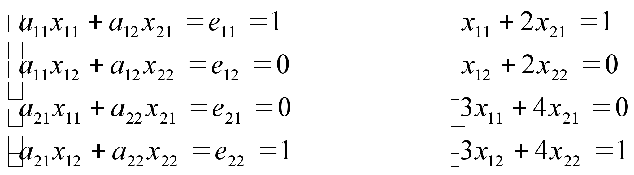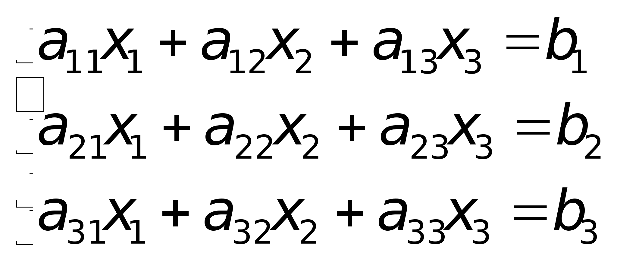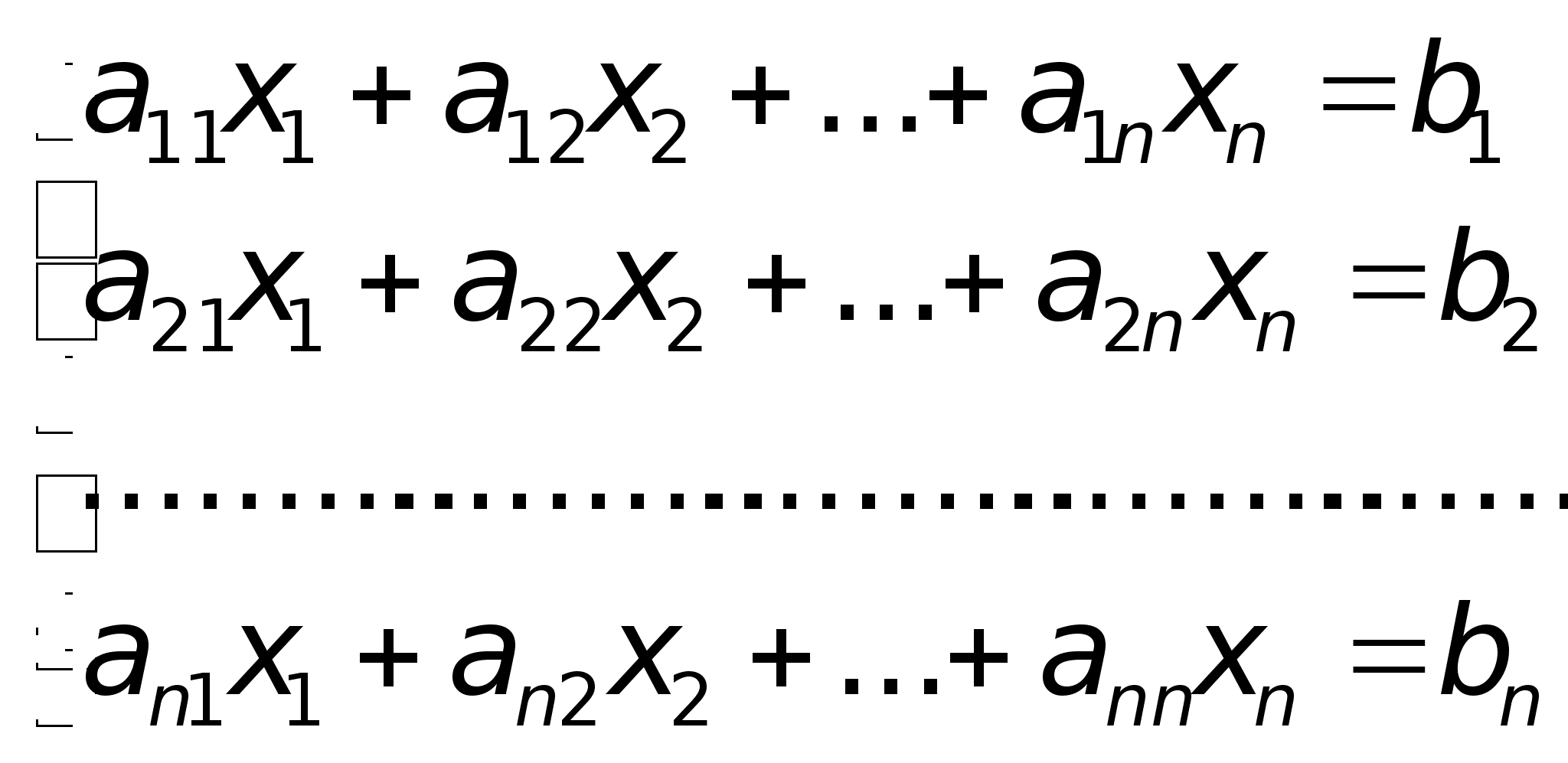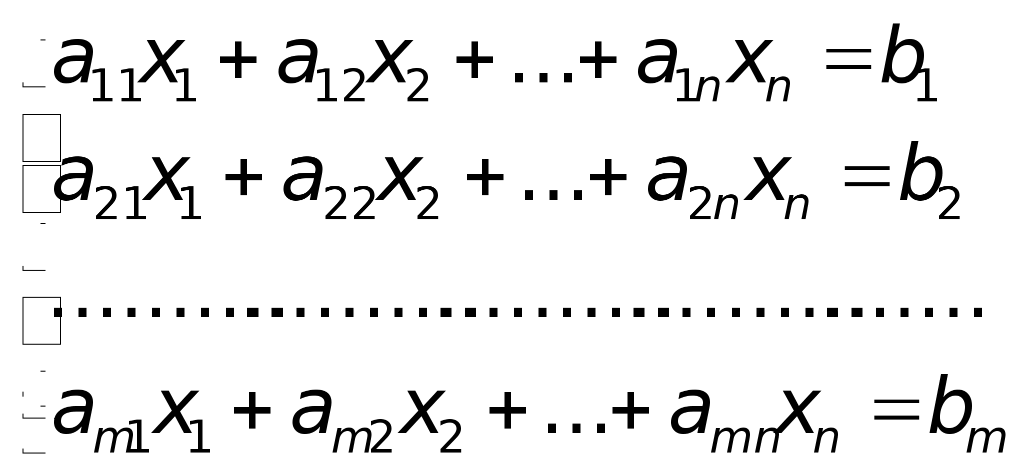 а11x1+а12x2+…+a1nXn=b1;