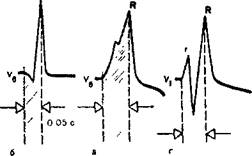 а - наводные токи - сетевая наводка в виде правильных колебаний с частотой 50 Гц; б - «плавание» (дрейф) изолинии в результате плохого контакта электрода с КОЖЕЙ; в - наводка, обусловленная мышечным тремором (видны неправильные частые колебания). При записи ЭКГ со скоростью 50 мм с"1