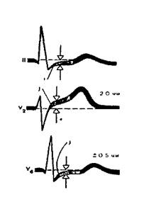 ) даже у здорового человека нередко наблюдается небольшое смещение сегмента RS—Т вверх от изолинии (не более 2 мм).