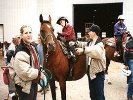 7. Посадка пациента на лошадь и ссаживание его в конце занятий – самые ответственные и опасные моменты, поэтому перед тем, как посадить ребенка на лошадь, полезно еще раз убедиться в безопасности ситуации, спокойствии лошади и готовности коновода.