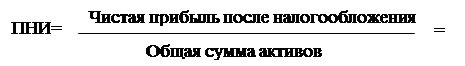 Прибыль на инвестиции, которая определяет взаимосвязь между чистой прибылью и инвестированным капиталом (общие активы), это критерий оценки эффективности использования руководством каждого доллара, инвестированного в активы компании. Увеличение ПНИ сказывается на увеличении прибыли на собственный акционерный капитал. ПНИ рассчитывается следующим образом: