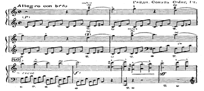 3. Совместно со студенткой находим «неблагополучные» по темпу отдельные фрагменты и, применяя методический приём сопоставления, «стыкуем» их с начальными тактами пьесы.