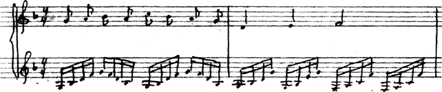 Лена подстраивала свое пение к фортепианным триолям и получался такой ритмический рисунок: