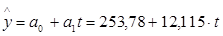 Из соответствующих уравнений прямых, полученных для перечисленных выше показателей, при подстановке соответствующего года найдем линейную зависимость показателей от времени.