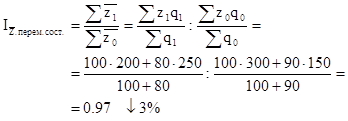 – себестоимость единицы продукции соответственно в периоде базисном и текущем; q1