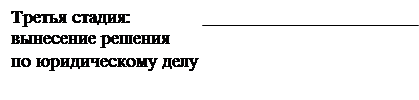 принятие индивидуального юридического решения по рассматриваемому делу или вопросу. Процедуры принятия правоприменительных решении многообразны. Они более просты для органов и должностных лиц исполнительно-распорядительной власти (указ Президента РФ о назначении на должность министра, приказ руководителя о приеме работника на работу и т. п.). Наиболее сложны процедуры принятия актов юрисдикционных органов, правоприменительный процесс в которых в зависимости от характера принимаемого решения подразделяется на следующие виды: