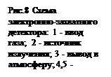 Детектор электронного захвата представляет собой ячейку с двумя электродами (ионизационная камера), в которую поступает газ-носитель, прошедший через хроматографическую колонку (рис. 8). В камере он облучается постоянным потоком b-электронов, поскольку один из электродов изготовлен из материала, являющегося источником излучения (63