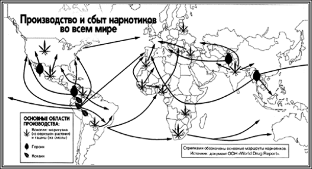 | Хотя употребляющих наркотики меньшинство, все же их достаточно, чтобы магнаты наркобизнеса - те, кто организует производство и сбыт наркотиков, могли сосредоточить в своих руках огромную власть. Эти беспринципные люди занимаются преступной деятельностью, которая стала самым прибыльным и практически самым крупным бизнесом в мире. Торговля наркотиками составляет сегодня около восьми процентов всего объема международной торговли и приносит ежегодную прибыль примерно в